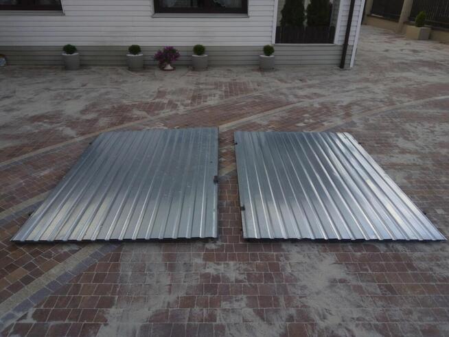 Sprzedam używane Drzwi garażowe brama podwójna dwuskrzydłowa otwierana na boki, wrota blacha ocynk ocynkowana metalowa o ...