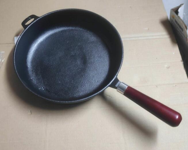 Patelnia żeliwna 28 x6 cm marki Peterhof. W dnie mała zagłębienie, nierówność, Na jakość smażenia przy całym ...