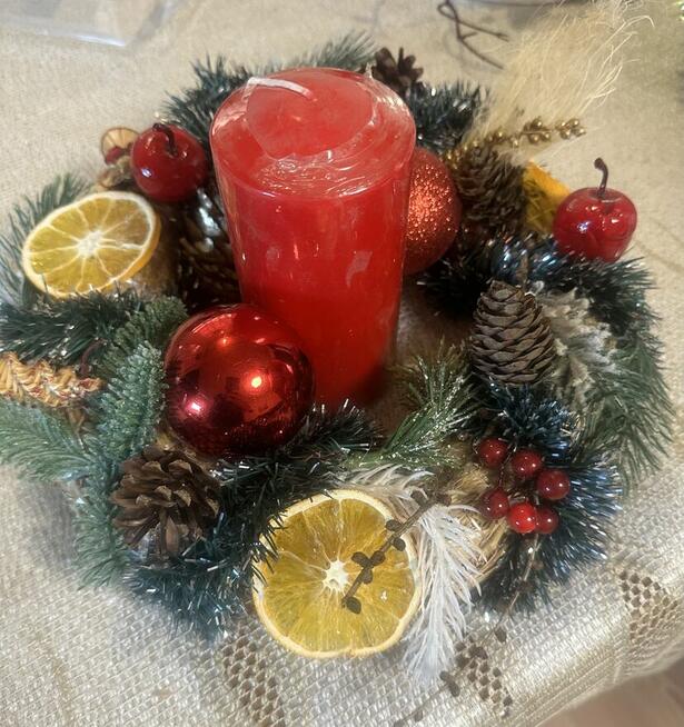 Wianek świąteczny na stół lub drzwi ręcznie robiony. Średnica 30 cm. Możliwość negocjacji ceny. Wysyłka lub ...