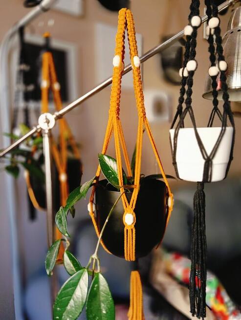 Sprzedam piękną makrame ręcznie robioną. Kwietnik makrama, wiszący w kolorze musztardowym. Kwietnik pięknie ozdobi ...