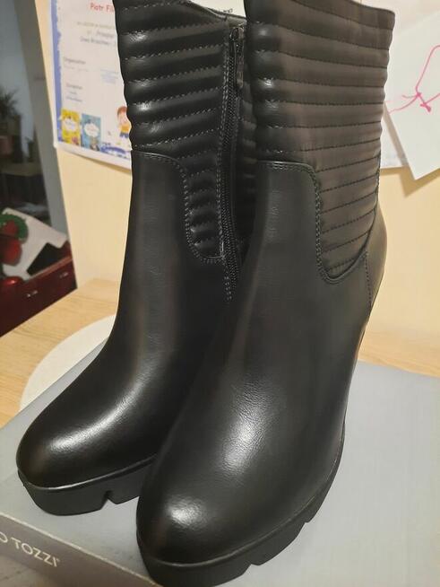 Nowe Botki na koturnie ocieplane rozmiar 38, gofrowane cholewka, nowe bardzo wygodne zapraszam