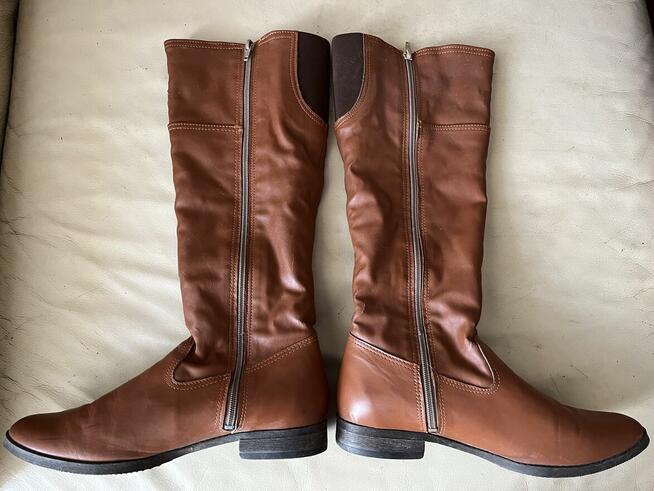 Damskie kozaki skórzane ocieplane całe w środku posiadają dwa suwaki rozmiar 39 firmy ruan kolor czarny kup teraz 100 zl ...