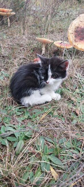 Znaleziono kotkę! Dziś w Belchowie, w lesie, znaleźliśmy małą kotkę — czarną z białymi łatkami. Jest bardzo ...